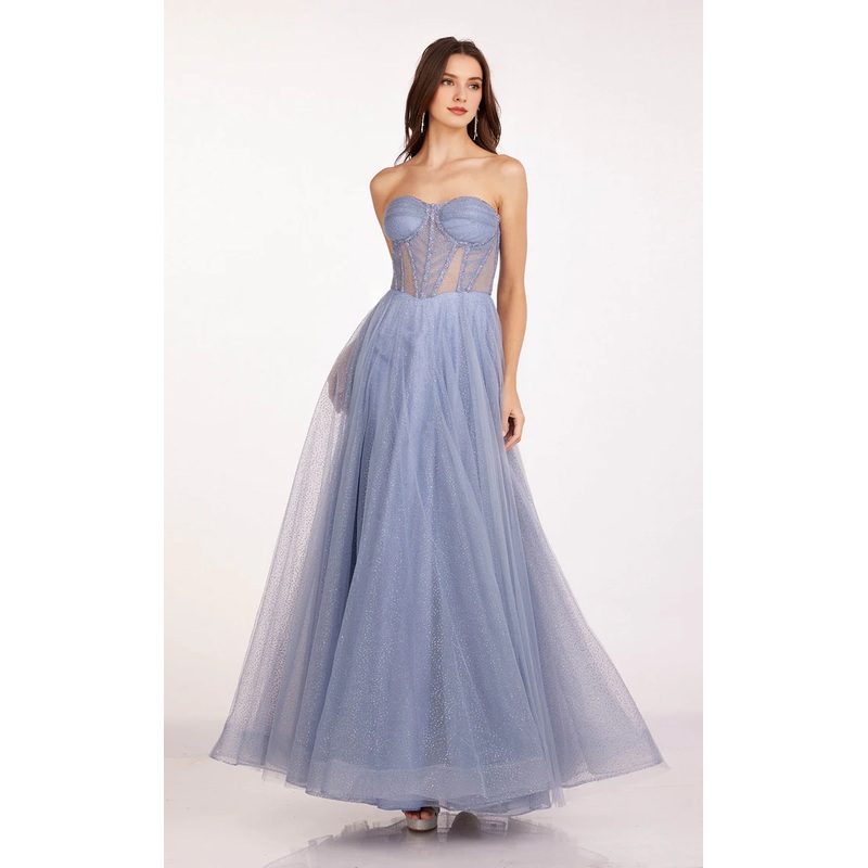 A-line strapless sheer tight corset and floor length Prom dress