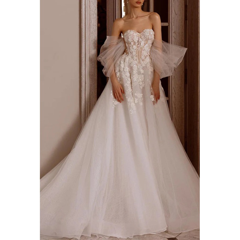 A Line Sweetheart Lace Applique Countryside Style Wedding Bridal Dress