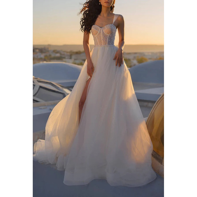 Be the first to review “A Line Sweetheart Pearl Princess Wedding Dress”