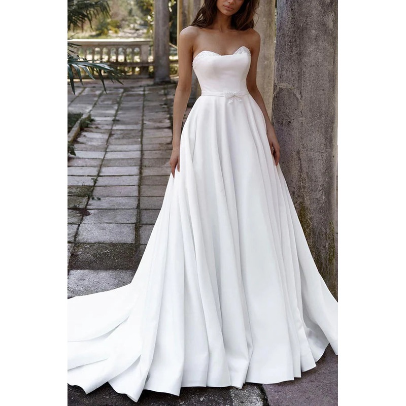A line Sweetheart White Satin Hall Leisure Wedding Dress Country Style Bridal Dress