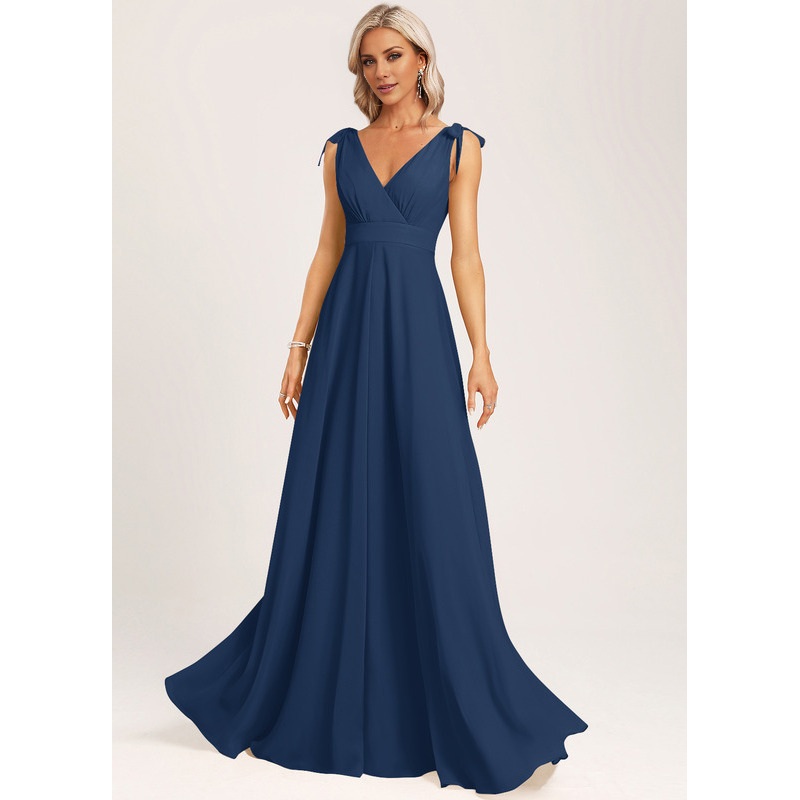 A-line V-neck floor-length chiffon bow bridesmaid dress