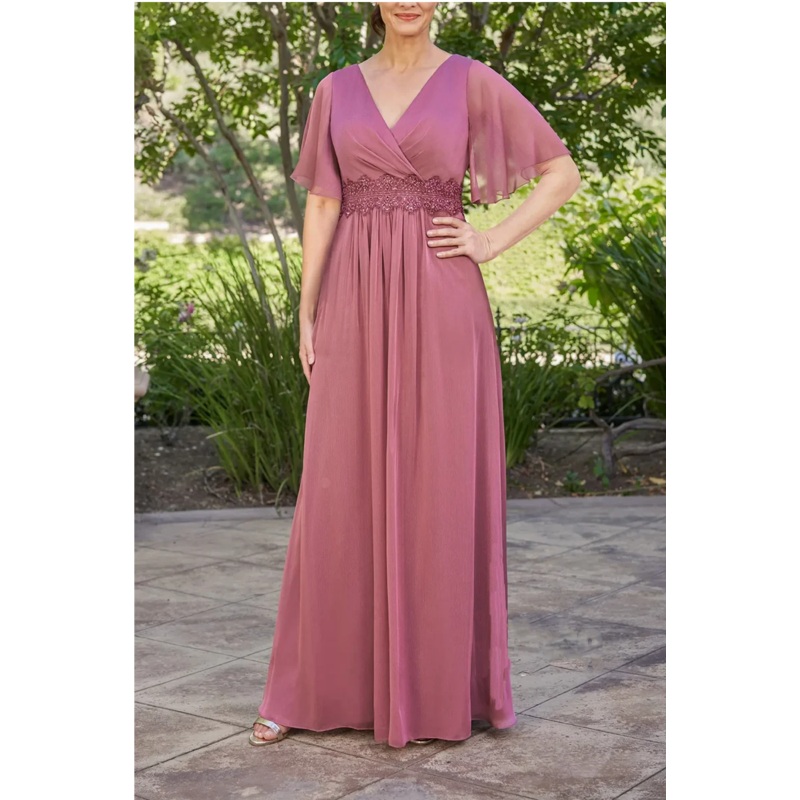 A-line V-neck short sleeved elegant oversized mother of the bride dress
