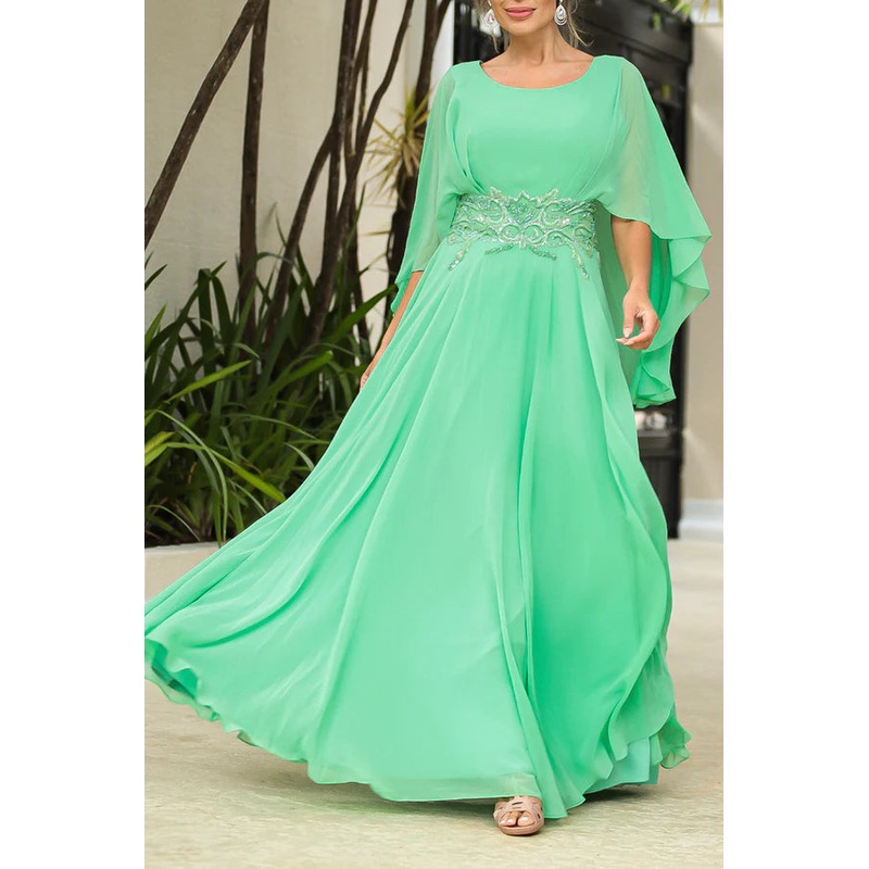 A-line waist bead chiffon elegant mother of the bride dress