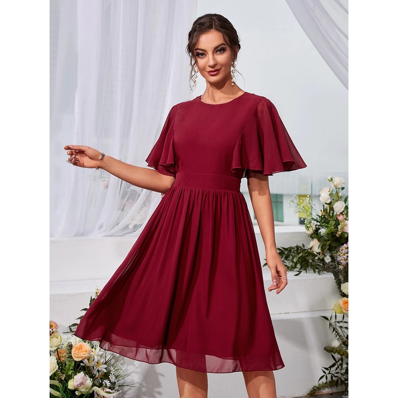 Be the first to review “A-Line Wedding Guest Dresses Elegant Dress Holiday Knee Length Short Sleeve Jewel Neck Chiffon with Pleats Ruffles”