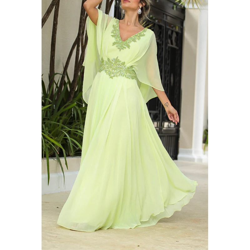 A-neck chiffon waist bead bat sleeve elegant mother of the bride dress