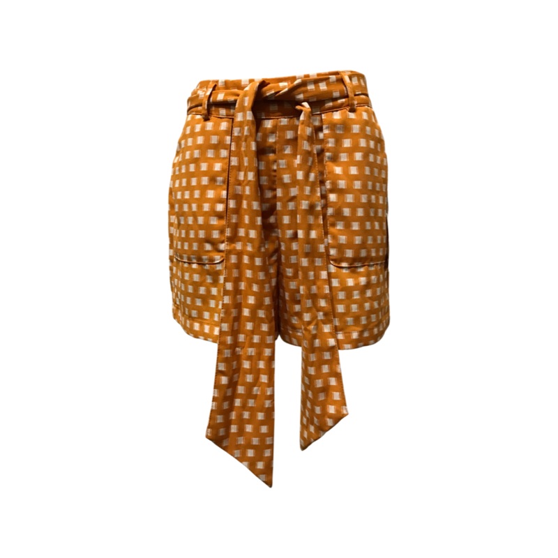 Women’s Gold/orange dress shorts, adjustable tie belt.