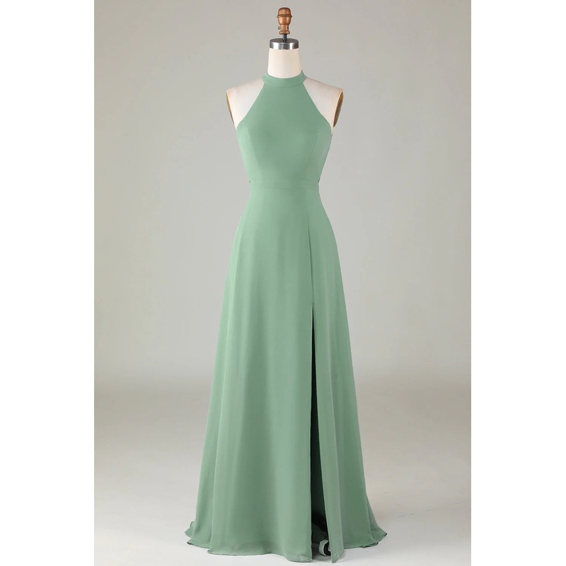 Be the first to review “A-shaped backless matcha front slit bridesmaid dress”