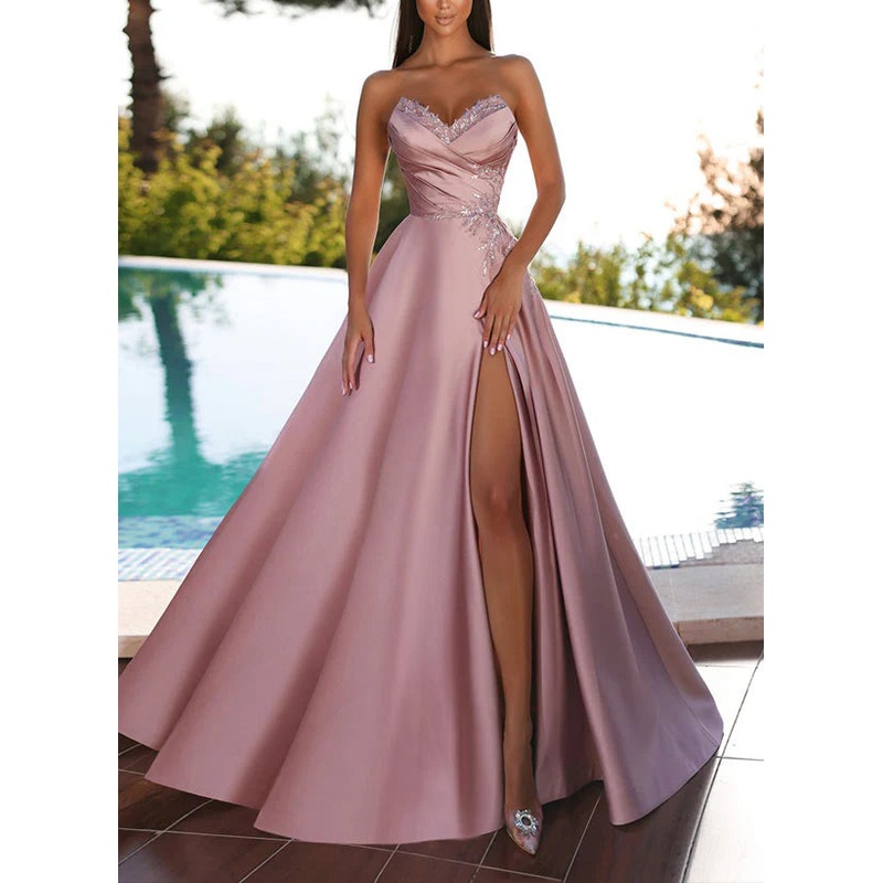Be the first to review “A-shaped/princess strapless and ground length slit floral prom dress”