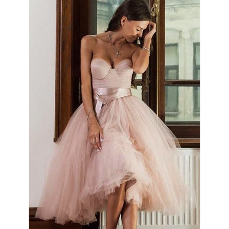 A-shaped thin gauze belt silk belt sweetheart sleeveless tea long Homecoming Dress
