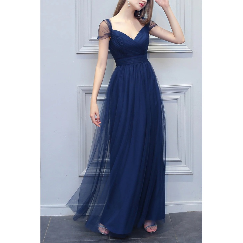 A-shaped V-neck long sheer bridesmaid dress