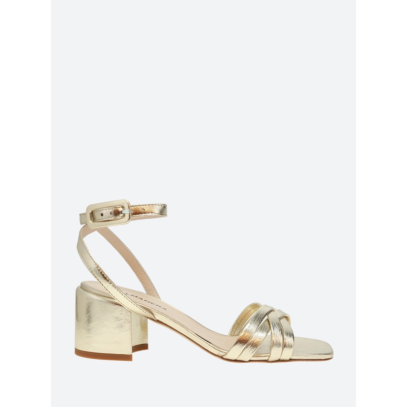 Crafted with a block heel and subtle square toe, this sandal features slender straps for an elegant silhouette.Woven straps at the vampAdjustable ankle strap with buckle closureSlip-on styleSquare toeMeasurements:50mm heelMaterialsUpper: leatherLining: lea