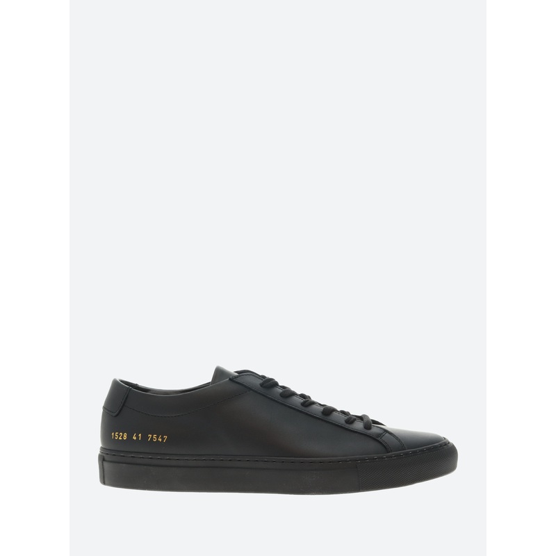 Common Projects' Achilles the original Common Project style. Using top grain leather for the upper and a full leather lining makes this a luxury Italian made sneaker. The clean lines and minimal gold branding make for a modern take on a classic tennis shoe