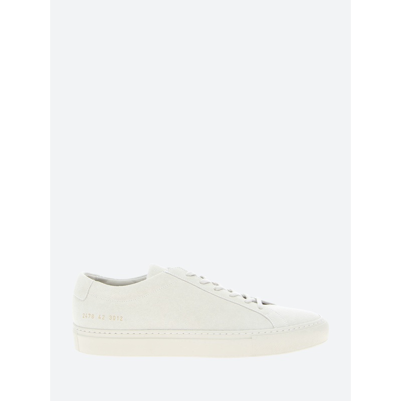 Common Projects' Achilles the original Common Project style. Using premium leather for the upper and a full leather lining makes this a luxury Italian made sneaker. The clean lines and minimal gold branding make for a modern take on a classic tennis shoe.L