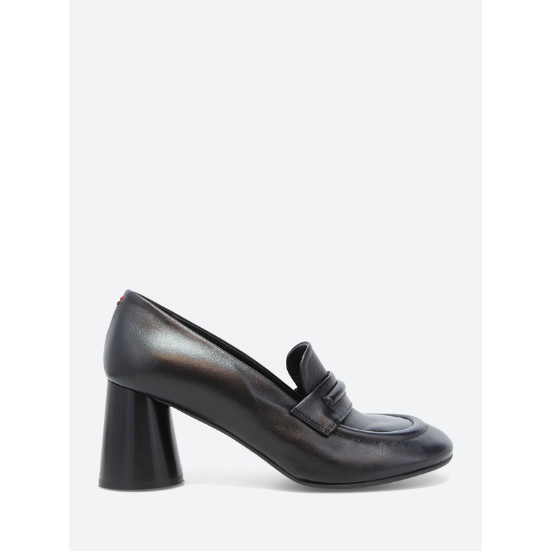 Classic penny loafer with a blocked-heel made from sleek leather with moc toe detailing.Slip-on styleStitched saddle strapMoc toeLeather lined footbedMeasurements:70 mm heelMaterialsUpper: leatherLining: leatherOutsole: rubberMade in ItalySize GuideFits tr