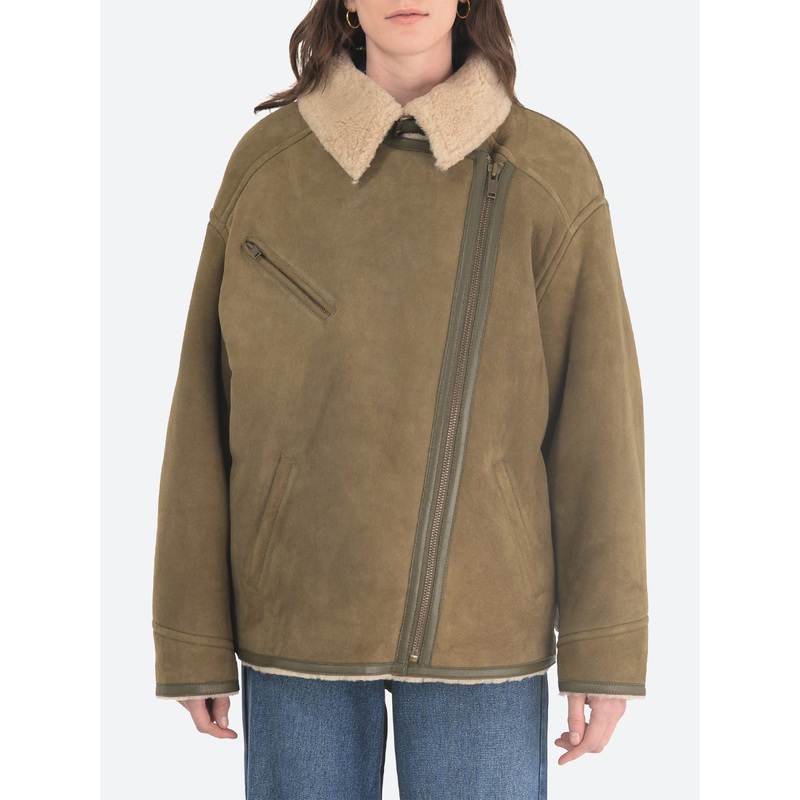 Isabel Marant Adagio jacket cut from a fine shearling in a timeless olive green.