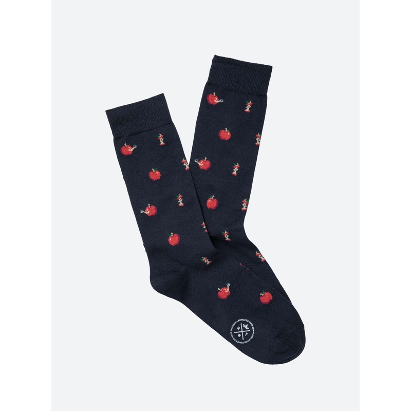 These playful socks feature a symbolic all-over apple print.
