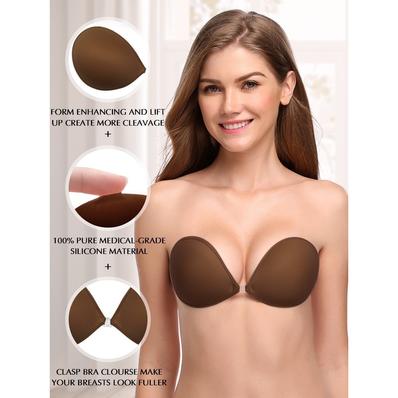 Adhesive Push-up Reusable Self Silicone Bra Coffee Brown A