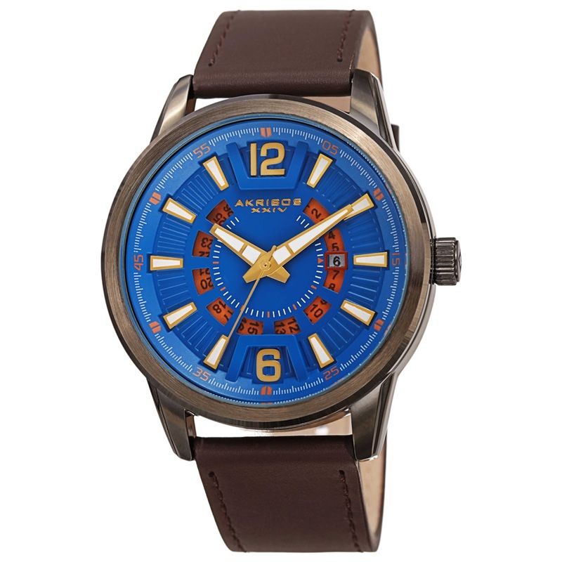 Akribos Xxiv, Men’s Watch, Stainless Steel Case, Leather Strap, Quartz, AK1079BUBR
