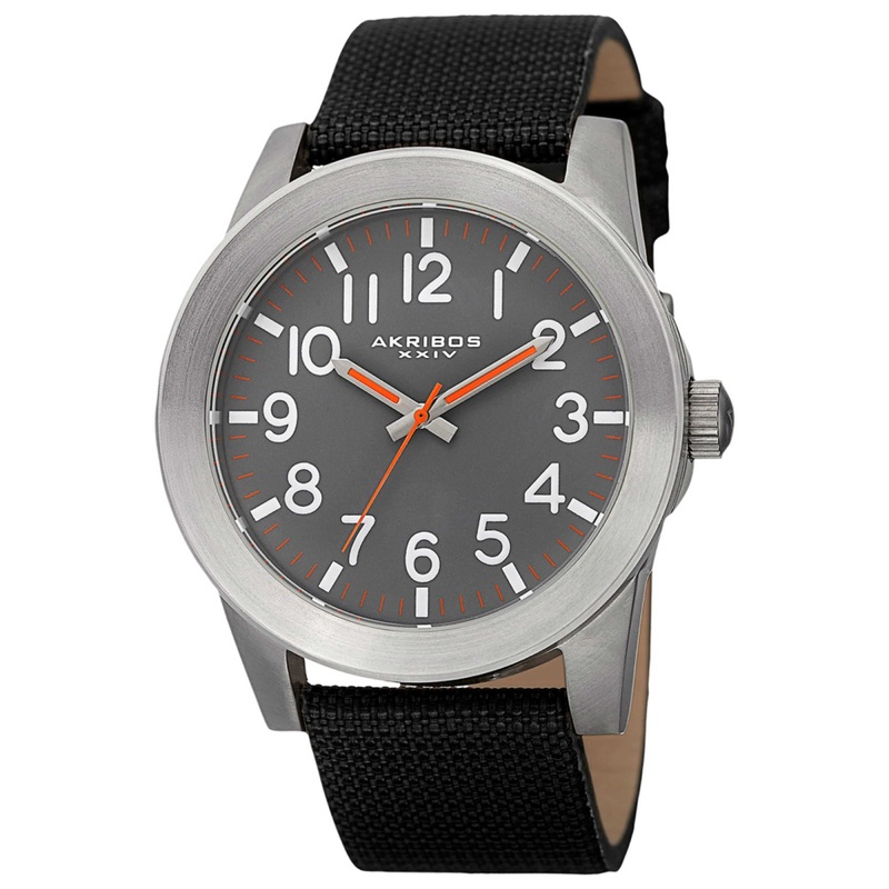 Akribos Xxiv, Classic, Men’s Watch, Stainless Steel Case, Canvas Over Leather Strap, Quartz, AK779SSB