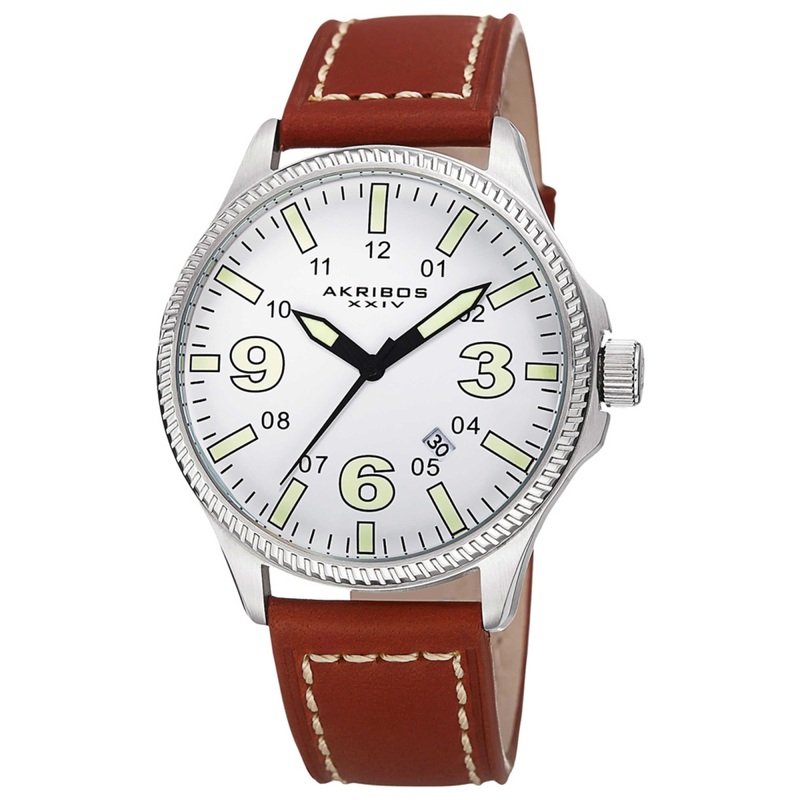 Akribos Xxiv, Men’s Watch, Stainless Steel Case, Leather Strap, Quartz, AK833SSBR
