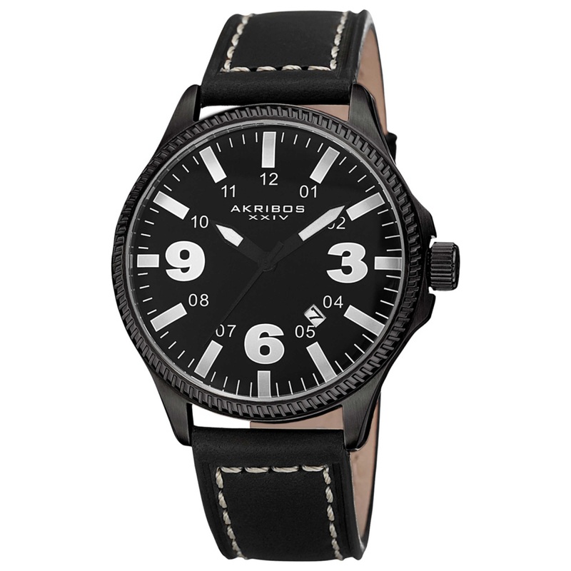 Akribos Xxiv, Men’s Watch, Stainless Steel Case, Leather Strap, Quartz, AK833WT