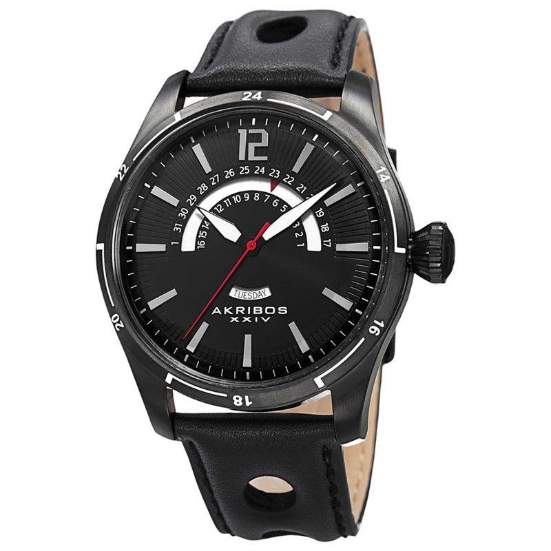 Akribos Xxiv, Men’s Watch, Stainless Steel Case, Leather Strap, Quartz, AK850BK