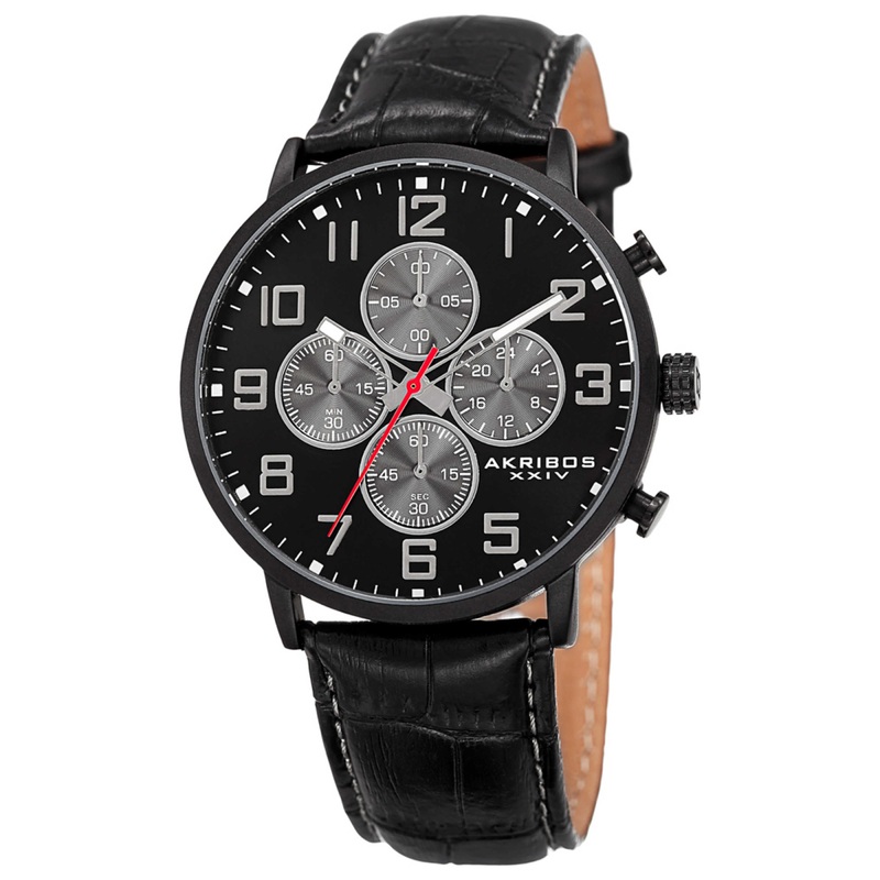 Akribos Xxiv, Men's Watch, Alloy Case, Leather Strap, Quartz, AK854BK