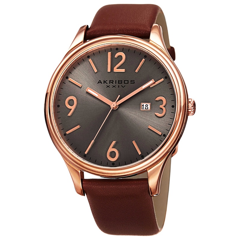 Akribos Xxiv, Classic, Men’s Watch, Stainless Steel Case, Leather Strap, Quartz, AK869RG