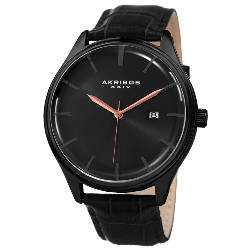 Akribos Xxiv, Classic, Men’s Watch, Alloy Case, Leather Strap, Quartz, AK914BK