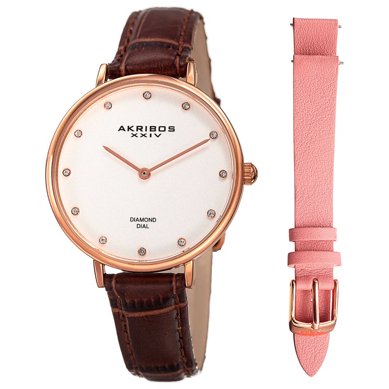Akribos Xxiv, Classic, Women’s Watch, Alloy Case, Leather Strap, Quartz, AK933RG-BX