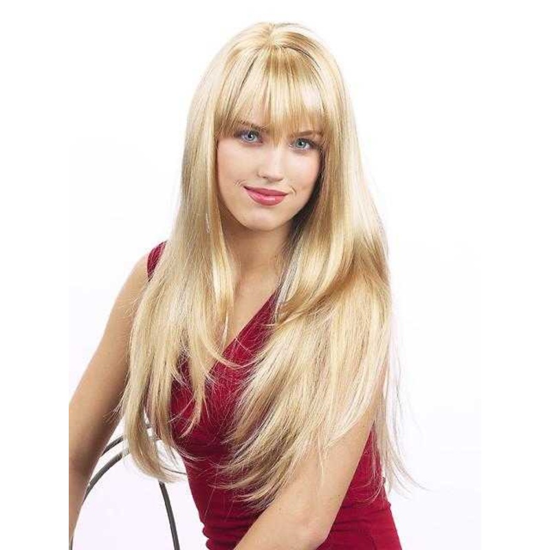 This lovely wig is 32 inches in length and long straight layers.