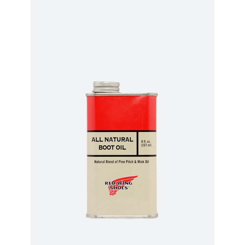 All Natural Boot Oil blends pine pitch and mink oil into a solution that conditions Red Wing oil-tanned leathers including Harness, Oil Slick, Legacy, and Oro-iginal.237 ml (8 fl oz)This oil may initially darken leather.