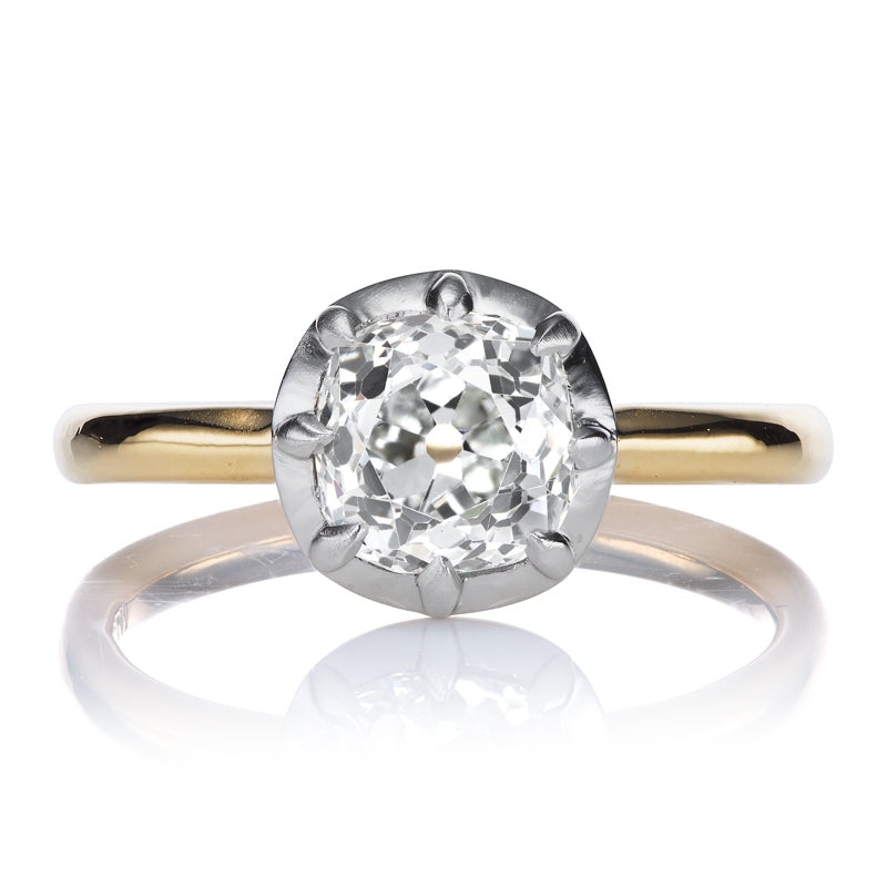 1.5 Carat Old Mine Cut Diamond in Two-Tone Collet Setting