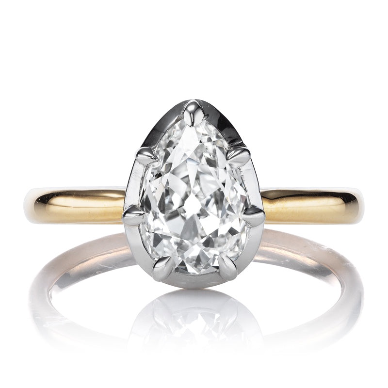 Antique Pear Cut Diamond in Two-Tone Collet Setting