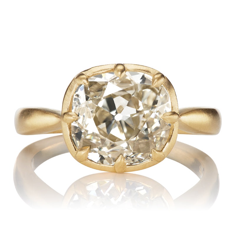 3 Carat Unique Old Mine Cut Diamond in East-West Collet SettingThe Allie 3.01 ring is an AB original design made right here in NYC. The ring centers a GIA-certified 3.01 carat Old Mine Cut diamond of L color, SI2 clarity. The stone is set East-West in an 1