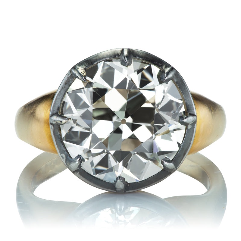 Incredible Five and Half Carat Old European Cut Collet Set Diamond Engagement RingTheAllie 5.61 ring is an AB original design made right here in NYC. The ring centers a GIA-certified 5.61-carat OldEuropean Cut diamond ofL color,VS2clarity. The stone is set