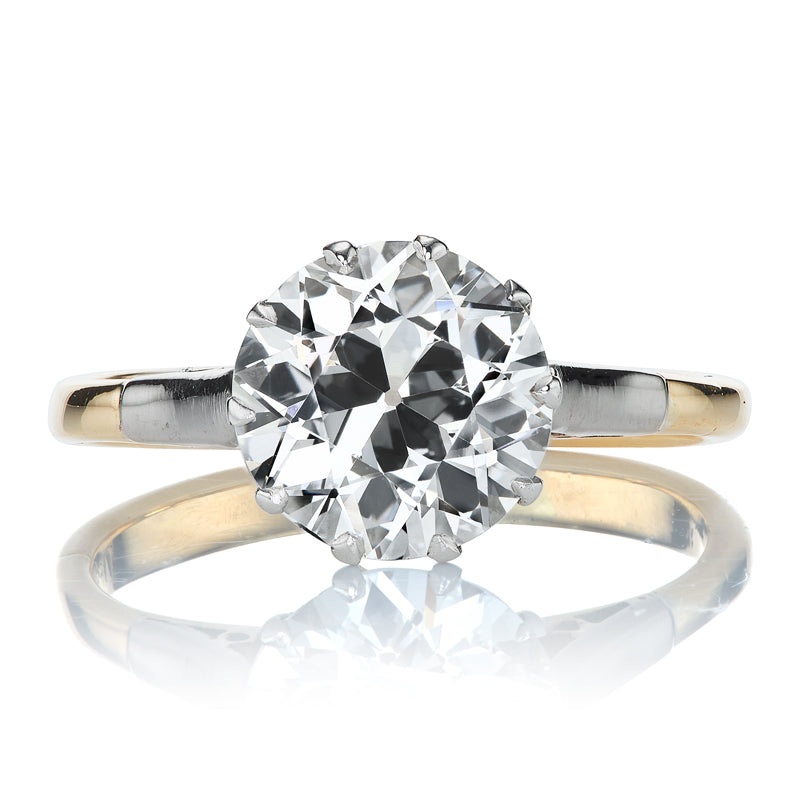 TheAlondra ring is a vintage Tiffany & Co. diamond ring from the Edwardian Era circa 1910. The ring centers a GIA-certified 2.15-carat Old European Cut diamond ofJ color,VS2clarity. The stone is set in a ten-prong two-tone platinum and 18kt yellow goldsetting. The ring is currently size5.75 and can be resized!