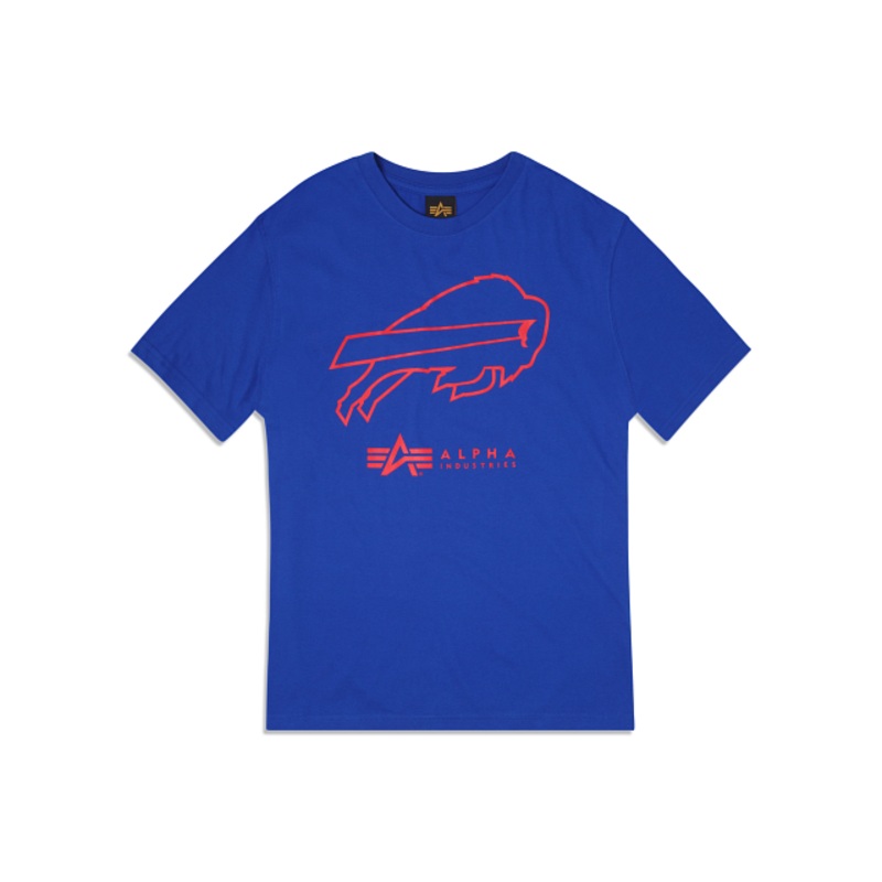 The Alpha Industries X Buffalo Bills T-Shirt features screen-printed Bills and Alpha Industries logos at the front with a multi-lingual message at the rear.