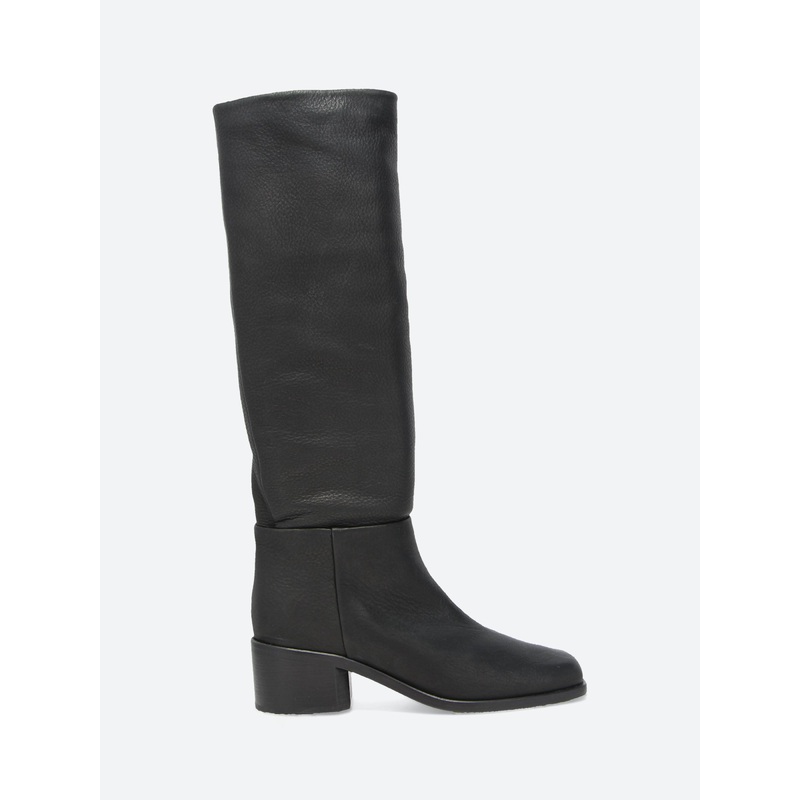 A tall and elegant knee-high boot featuring a sleek, minimalist design. This boot boasts a flexible leather sole, full leather welt, lightweight, but solid pine heel wrapped in genuine leather stack.Knee highPartial inside-zip closureModern square toeGentl