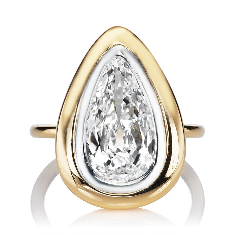 Two Tone Bezel Set D Color Pear Cut Diamond Engagement Ring