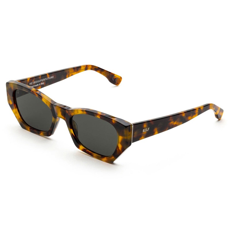 A sharp contemporary model, the Retro Super Future // Amata is a cutting-edge frame characterized by its unique sleek geometric outline. An edgy version of timeless 1960s frames, the models fast-riding silhouette features slanted rims with sturdy temples, straight lines and a bold nose-bridge. Lenses made by ZEISS. Includes RSF box, case, and cleaning cloth.