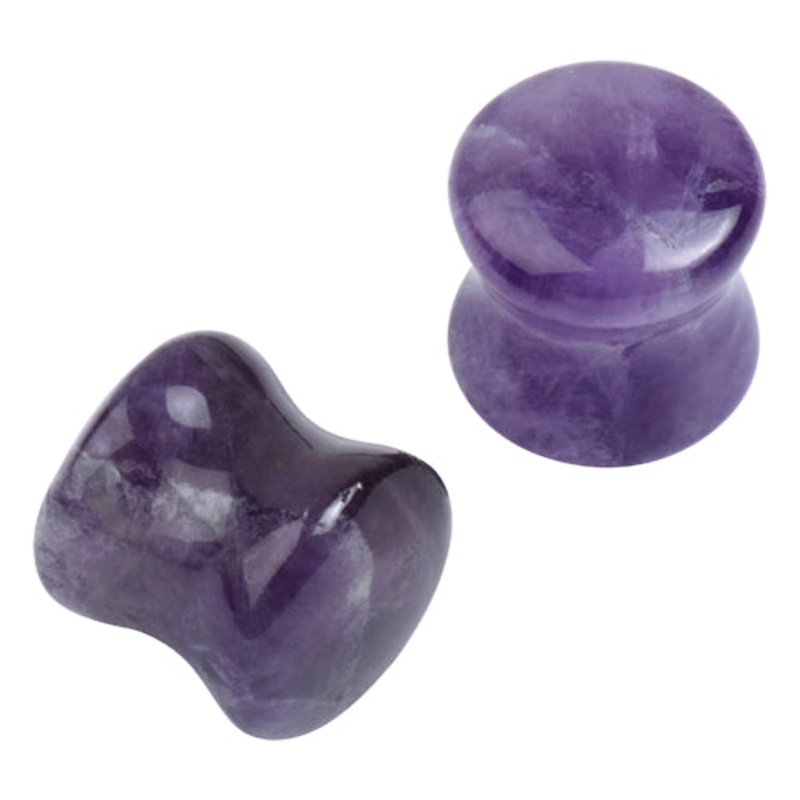 These double flare convex amethyst plugs have a wearable area of 3/8" between flares. Amethyst is a purple variety of quartz and February birthstone. Ancient Greeks believed it could protect the wearer from intoxication. Choose your size below.