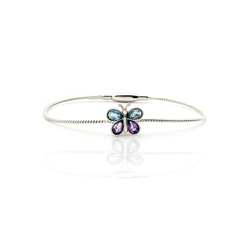 Amethyst & Sapphire Butterfly Bangle Bracelet (14K)