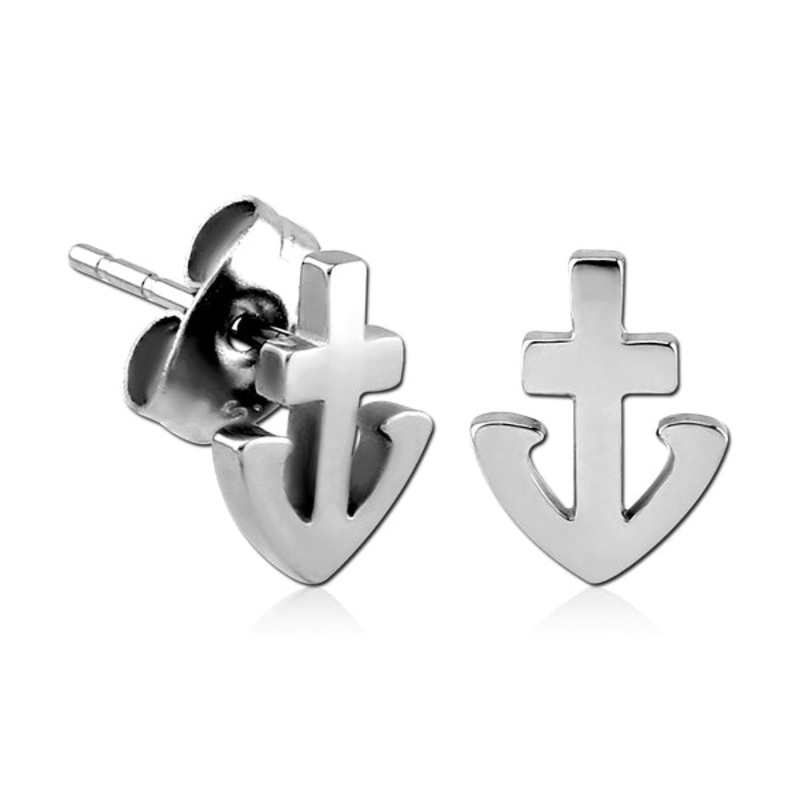 These 20 gauge anchor stud earrings are made from cast 316L stainless steel.