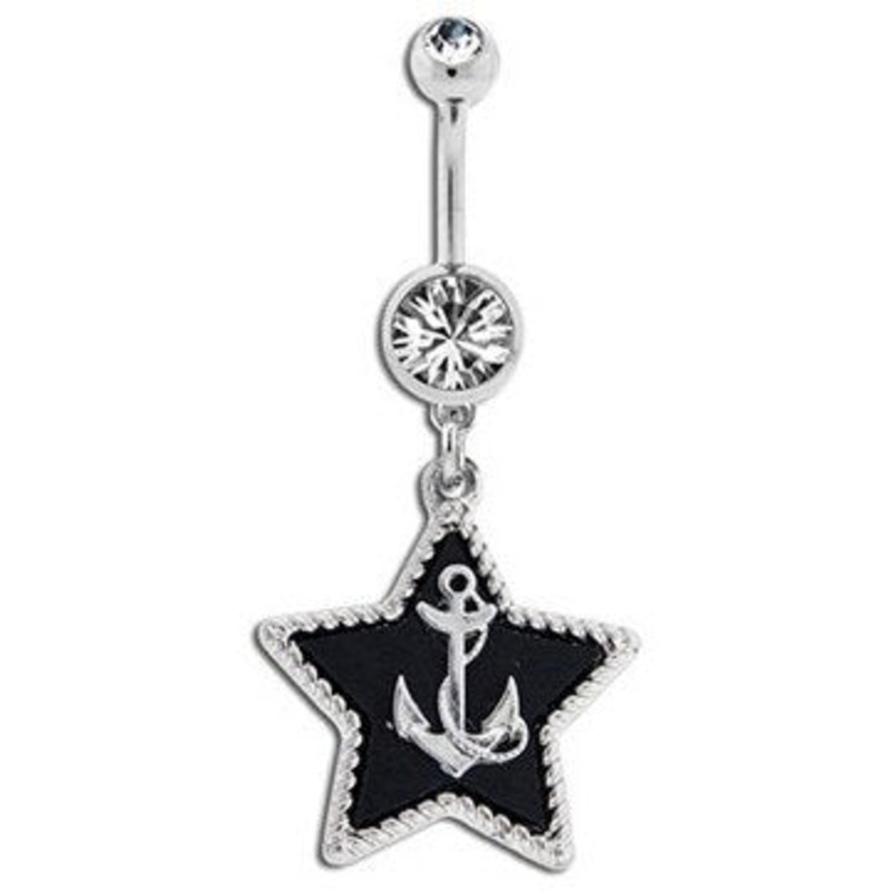 Anchor Star Belly Dangle 14g – 3/8″ long (10mm) Clear Stainless Steel