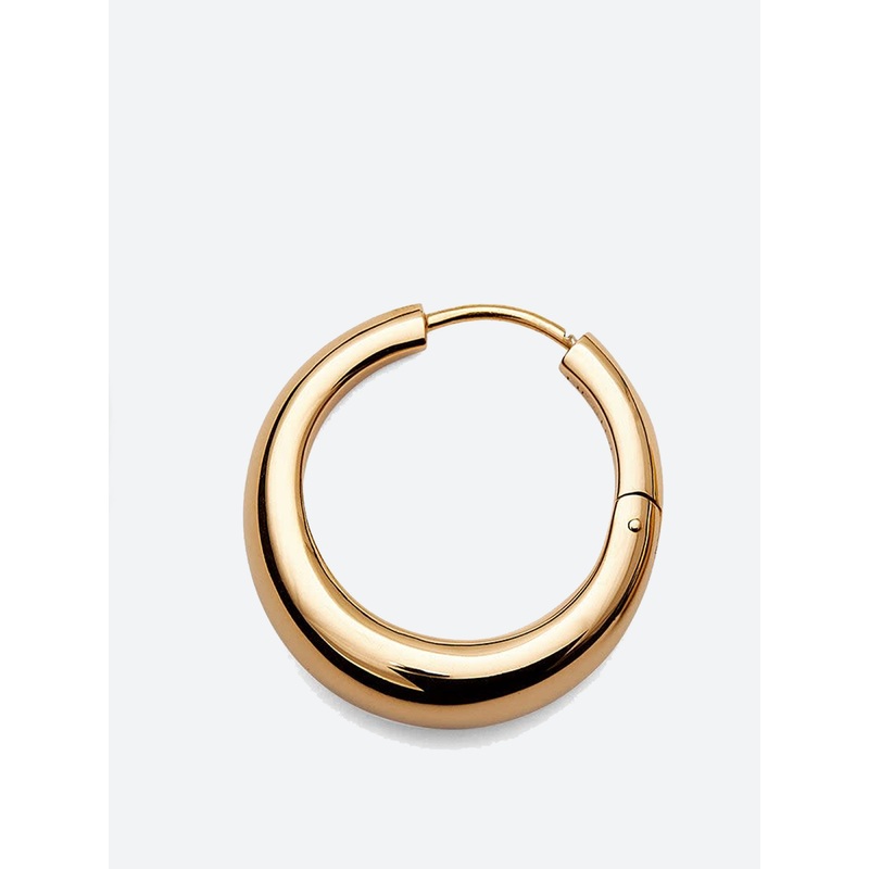 The perfect hoop in 18kt gold plated sterling silver, minimal and classic.Organically shaped with a graduated curve.18 karat gold plated .925 sterling silverHinge closureNickel-free and hypoallergenicEngraved logoMeasurements:Inner diameter of the hoop: 10
