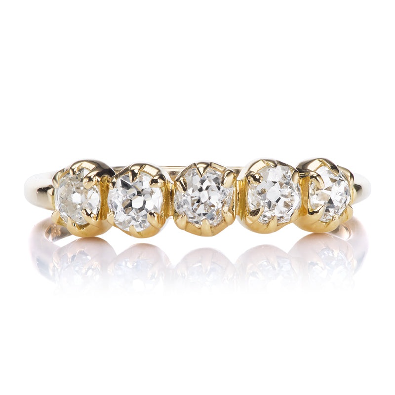 Five Stone Old Cut Diamond Ring in 18k Gold ColletThe Andria Band 0.60 is an AB original design made right here in NYC. The ring centers 5 Old Mine and Old European Cut diamonds totaling 0.60 carats of K-L-M color, VS-SI clarity. The stones are in an 18k g