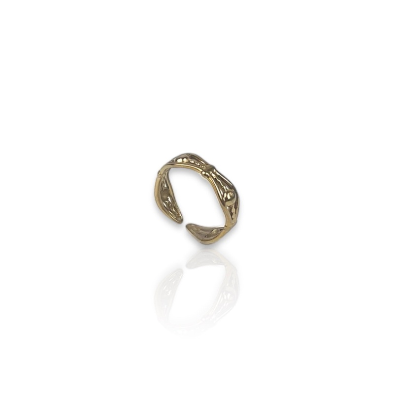 Anillo dorado con bolitas doradas. Es ajustable, sirve para todas las medidas.Esta hecho de acero quirrgico. Este material no pierde el color y no es alrgico.Material: acero alergnicoEste articulo esta diseado y fabricado integramente en Europa e importado