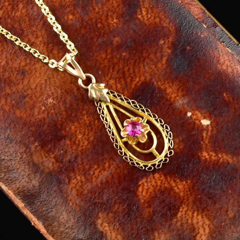 Be the first to review “Antique 10K Gold Ruby Lavalier Pendant Necklace”