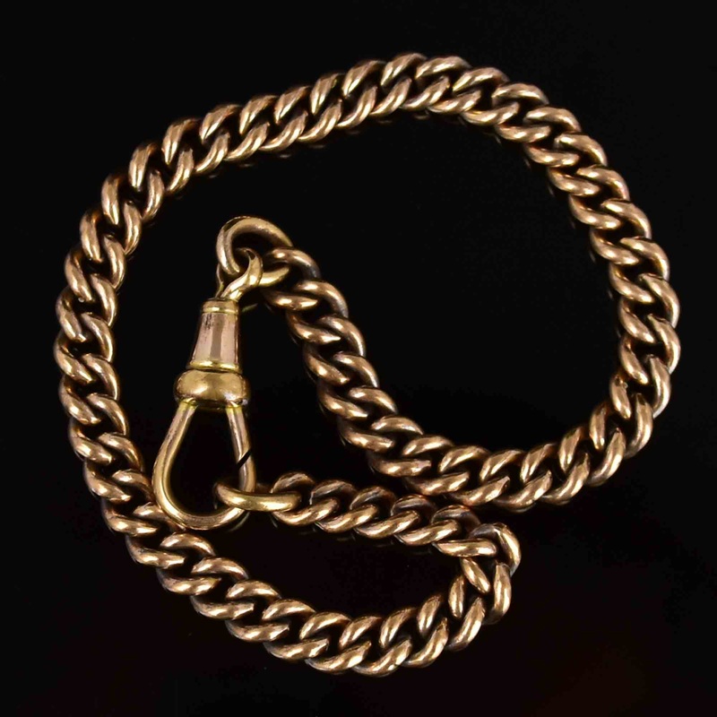 Antique Gold Pocket Watch Curb Chain Bracelet